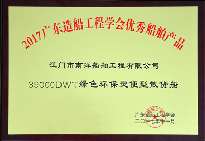 | 2016年5月20日 JNS通過(guò)廣東省第六批博士后創(chuàng)新實(shí)踐基地審批。 2016年5月30日 JNS入選工信部2016年兩化融合管理體系貫標(biāo)試點(diǎn)企業(yè)名單。 2016年10月13日 JNS榮登2016年廣東省制造業(yè)企業(yè)500強(qiáng)榜單。 ![]() 2016年12月 JNS B型39000載重噸綠色環(huán)保靈便型散貨船被認(rèn)定為廣東省高新技術(shù)產(chǎn)品。 |