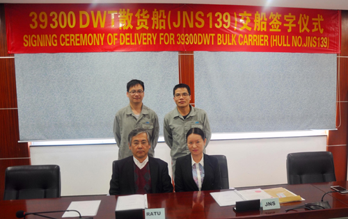Jiangmen Nanyang Ship Engineering Co., Ltd (JNS) built the second ship 39300DWT Hull NO.JNS139 for Nisshin Shipping Co., Ltd. (NISSHIN). Complete all construction schedule and successful delivered of the vessel, named Western Panama on Jan 27, 2015.