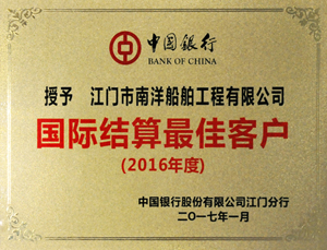 JNS won the best International Customer Settlement medal in 2016, is also the first time received the award issued by the Bank of China, which enhances the awareness of JNS in the international market and investors.