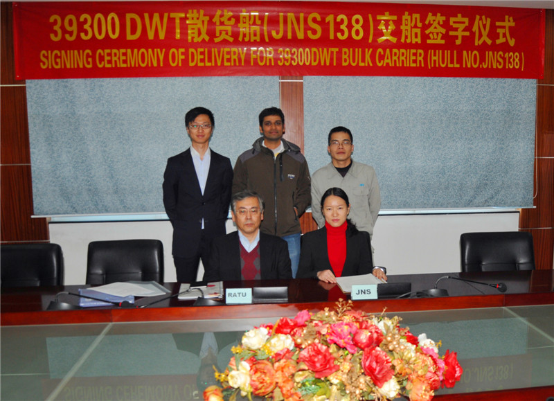 2015年1月15日上午九時(shí)許,JNS138船“Western london”號(hào)的交船簽字儀式在我司辦公樓五樓總經(jīng)理會(huì)議室舉行,船東和我司雙方代表出席了交船簽字儀式。正午一時(shí)許,“Western london”號(hào)拉響汽笛,離開(kāi)了我司碼頭,正式開(kāi)始了自己的海上航程。