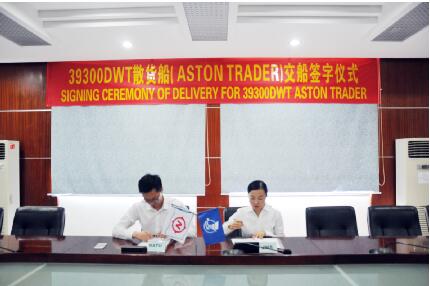 2017815日,我司為JNS151船“ASTON TRADER”號(hào)舉辦交接簽字儀式,船東和我司代表出席了儀式。正午一時(shí)許,隨著碼頭陣陣鞭炮聲響起,“ASTON TRADER”號(hào)緩緩離開(kāi)公司碼頭,啟程遠(yuǎn)航。