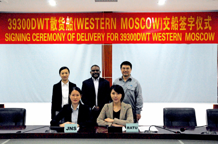 2019年5月10日,JNS159船WESTERN MOSCOW號(hào)交接簽字,中午十二時(shí)許啟程遠(yuǎn)航。