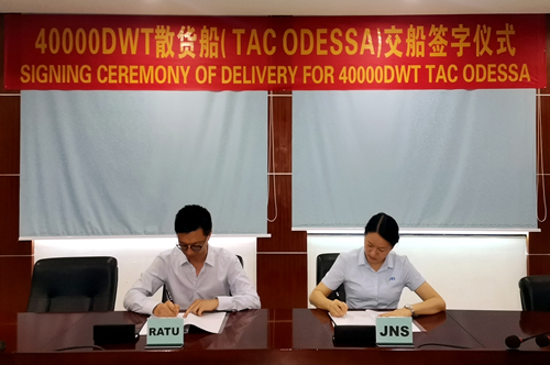 2021年5月25日,JNS179船TAC ODESSA號交接簽字,當(dāng)天下午啟程遠(yuǎn)航。同時(shí),JNS179船是JNS建造的第八十艘。